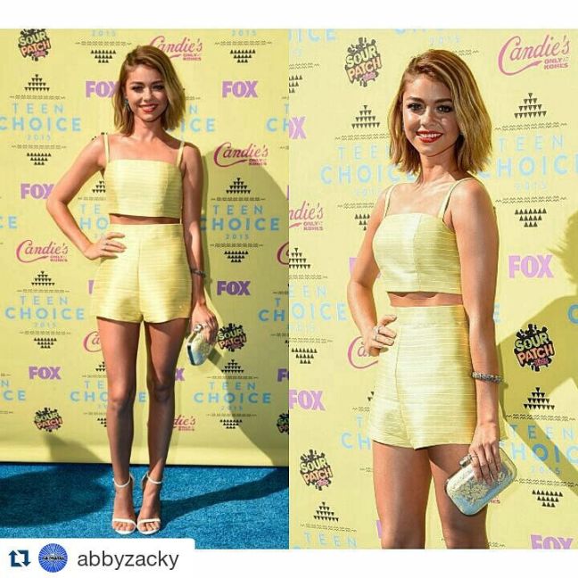 Wearing Christian Siriano | Thanks to Abby Zacky. This is an amazing picture of Sarah. This brilliant Christian Siriano yellow two piece makes her look fabulous. #Victoryforu #Fashionblogger Be Victorious Everyday.
