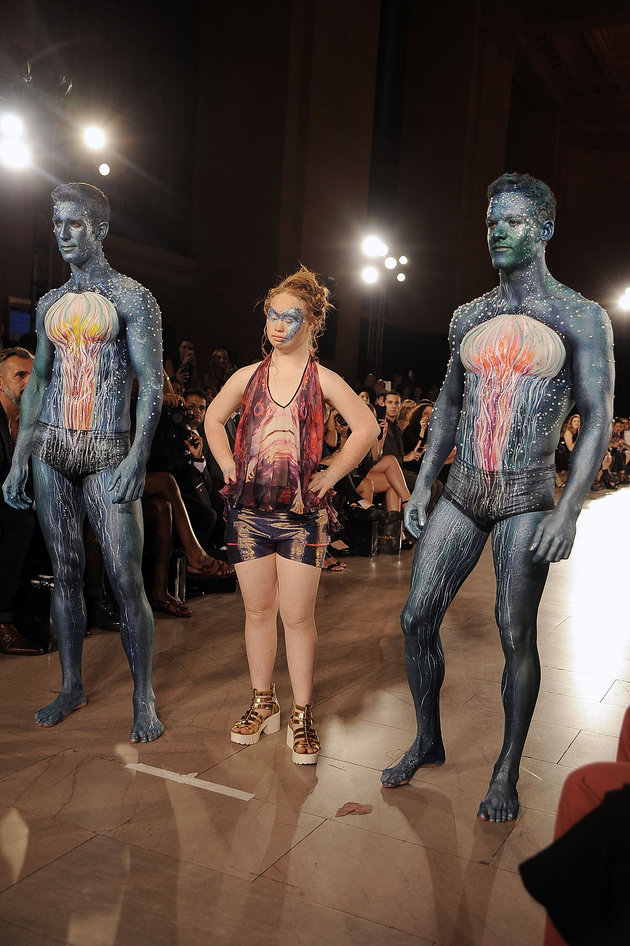 NEW YORK, NY – SEPTEMBER 13: (L-R) Models Jesse Pattison, Madeline Stuart and Ben Pulchinski walk the runway at Hendrik Vermeulen show during Spring 2016 during New York Fashion Week at Vanderbilt Hall at Grand Central Terminal on September 13, 2015 in New York City. (Photo by Chance Yeh/Getty Images)