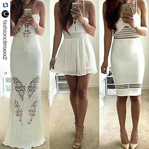 sure to follow @clothesenvy for more cute styles! | Just because summer is over, doesn’t mean you can still rock the colour white. Just add either black or some autumnal colours to embody the season. Which dress is your favourite? You decide. Tell me below. #WomenswearWednesday #VictoryforuFashion Be Victorious Everyday.